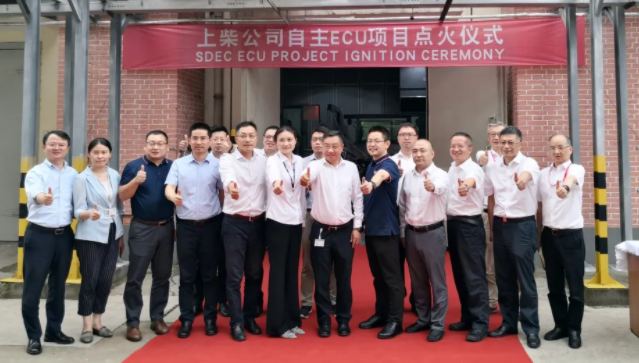 2020.06.286月24日,在易控董事长李进的带领下,公司有关领导及部分技术骨干,来到上柴试验认证部B9台架,与上柴领导班子成员共同参加在这里举行的自主ECU项目发动机点火仪式。